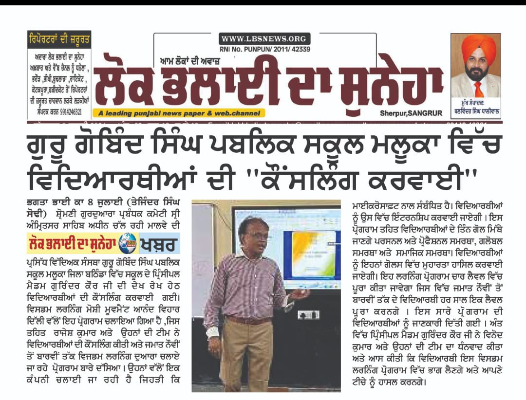 COUNCILLING OF CLASS IX TO XII STUDENTS BY WISDOM