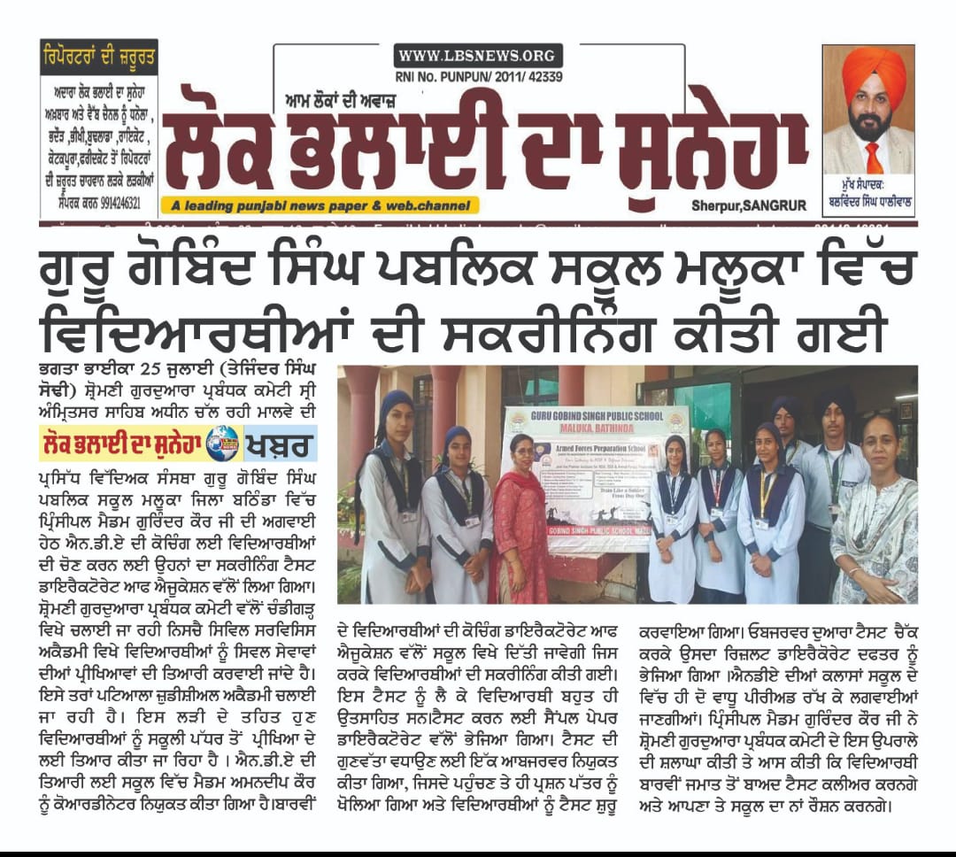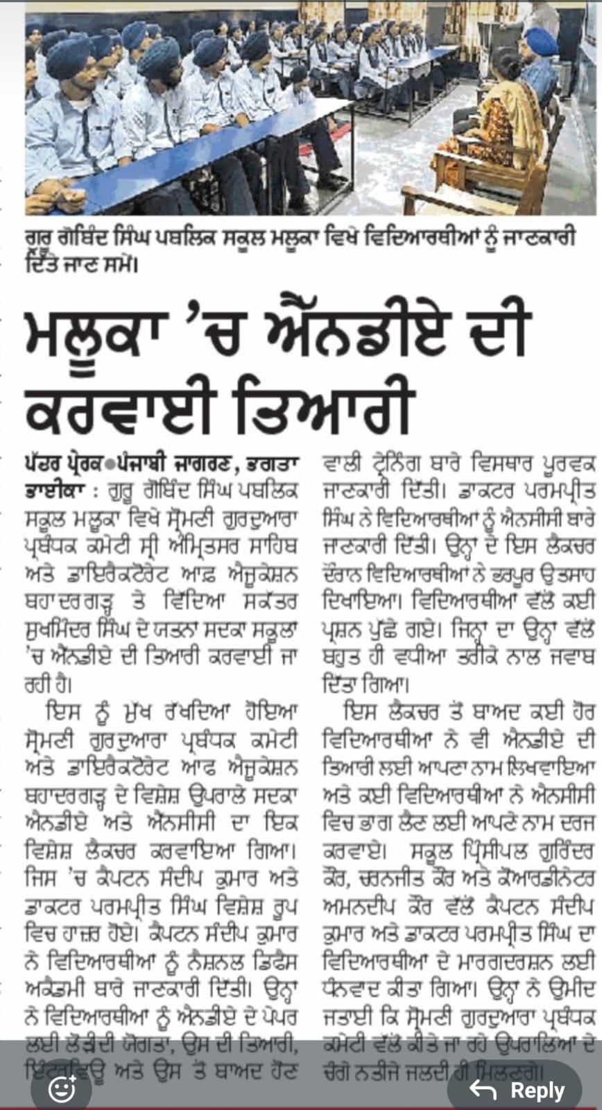 NDA PREPRATION AT SCHOOL LEVEL ORGANISED BY SGPC