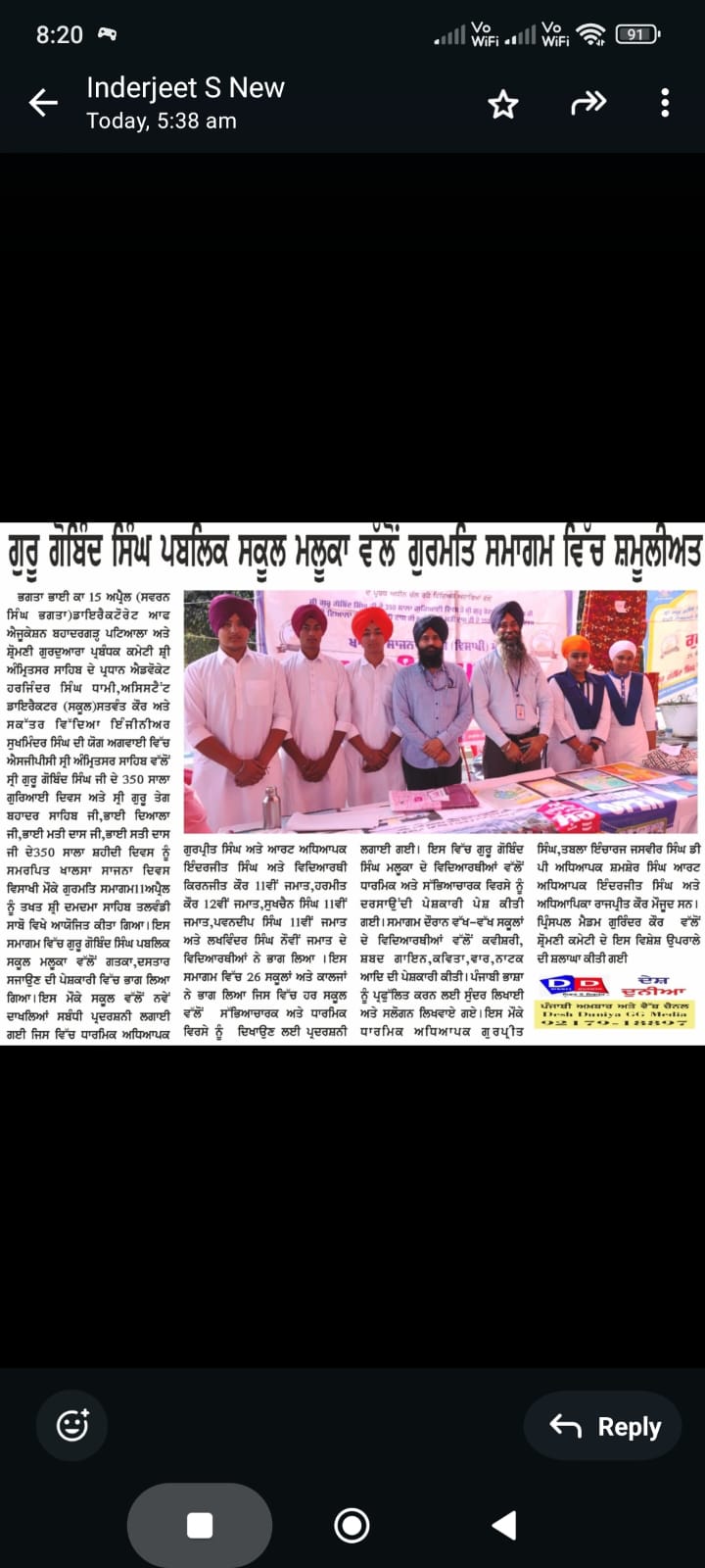 Kav E Sikhi Kavishri Competition organised by DESG